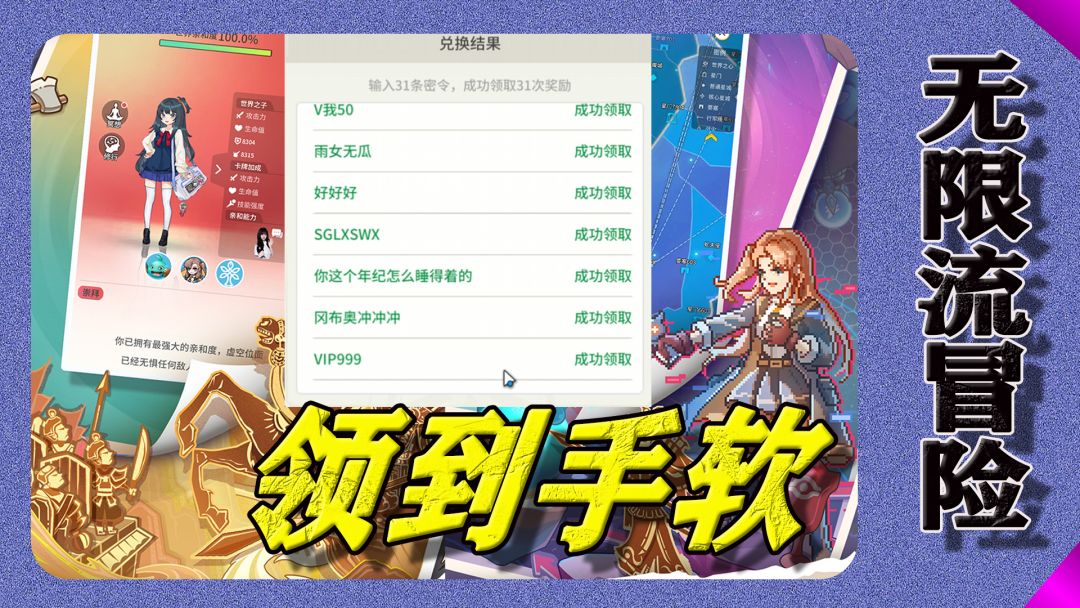 礼包码合集:VIP666 VIP777 VIP888 VIP999 sglxsqq sglxswx 全体目光向我看齐 无限流启动 科目三 哈基米 不思议迷宫 最强蜗牛 阿瑞斯病毒 时光旅行社启动 遥遥领先 愚公移山 元旦快了 V我50 泰裤辣 元旦快乐 雨女无瓜 天冷加衣 白雪公主复仇记 勇闯埃拉西亚 冈布奥冲冲冲 你这个年纪怎么睡得着的 腊月寒冬 好好好 尊嘟假嘟 别太荒谬 我嘞个豆 反思自己不