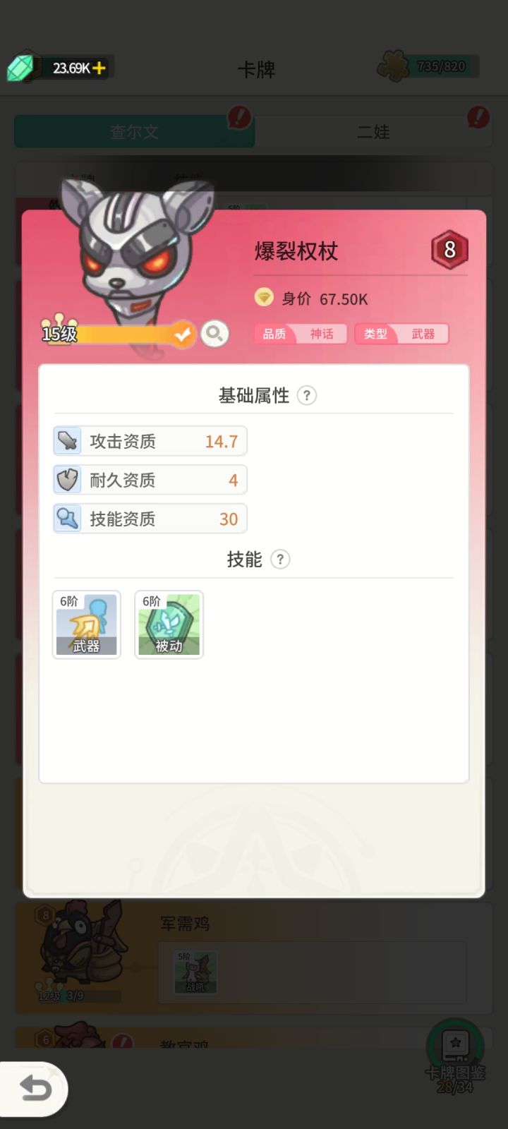大家好,今天给大家详细的介绍一下查子的前期攻略,如有不足之处请提出来,谢谢首先,讲一下前期抽卡3选一方面的事情:抽卡 有蝙蝠 赌蝙蝠 权杖前期不建议使用 不如金卡刀 大佬狗 工程狗 治疗兔子 权杖等级越高越好 平民建议考虑能量盾流派 羊驼强化核心卡牌出来太迟 造价也不便宜 不建议养 盾流派几个关键卡都是普红 肝一点很容易15 追个15蝙蝠 就可以屯下赛季了 彩卡也没特别需要的 根据自身情况