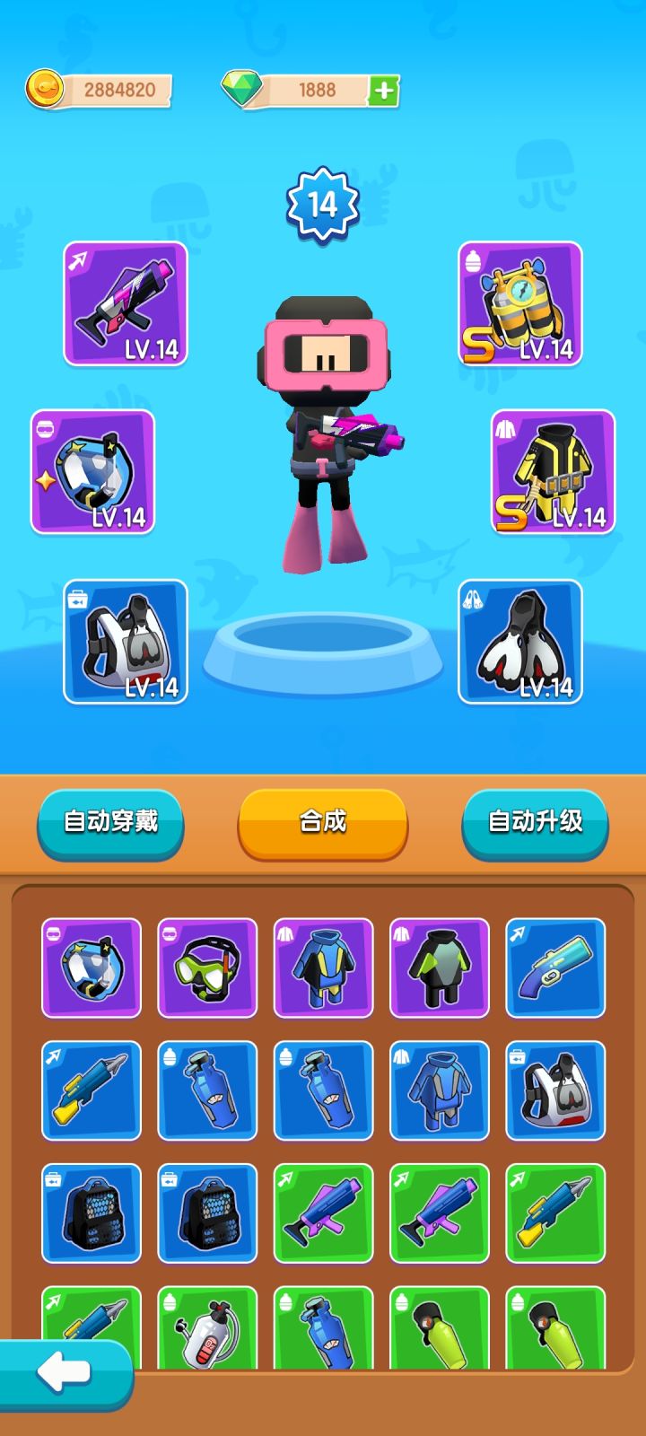 内容有点少,第一个boss比较好打,打第二个的时候卡了一个bug,第三个boss躲技能就行。攒钻直接2650十连,升级合成装备就行。我14级就通关了第三章,用的这套装备(第一张装备图)。最后这个装备图是打完boss以后,想删游戏了,发现还有1800钻,开箱子开了两个紫色装备(不早来)。