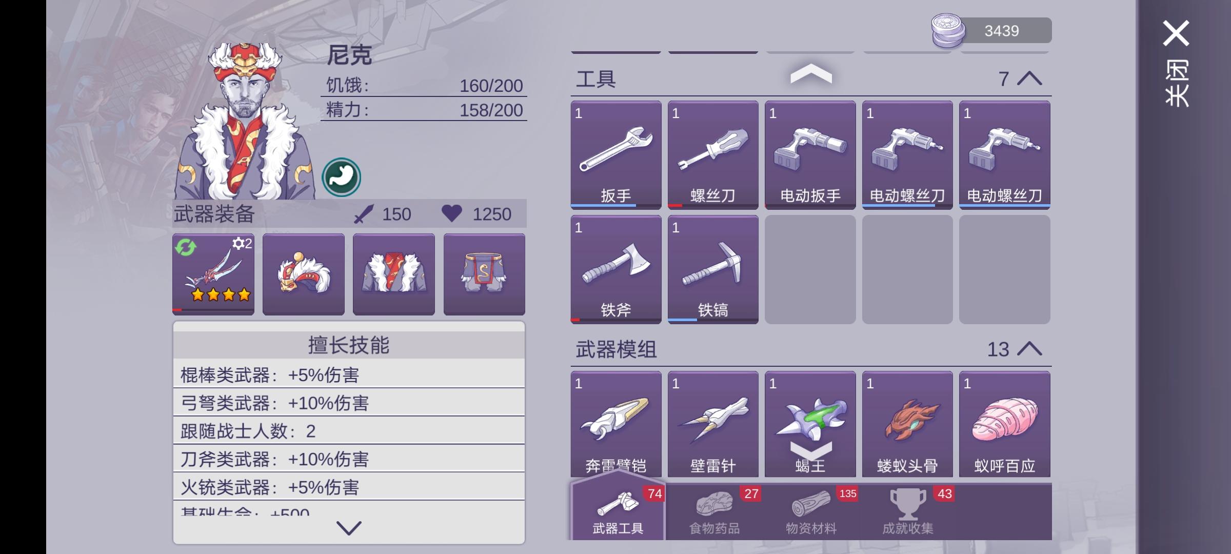 1. 低级治疗药剂:生物学家查尔斯处 效果:立即回复一些生命 制作材料有甲虫囊 2. 钢斧,可用来砍伐树木、家具 耐久度:500,砍伐力度很大 3. 最强蜗牛可以装备在自行车上:+25%左右的骑行速度 4. 迅雷不及可以装备在摩托车上:每行驶 一段时间可以加快驾驶速度持续10秒