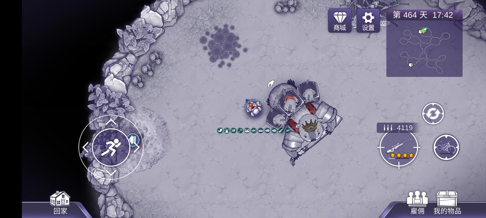 #浅评一下 零氪18天也能通关,第一次玩磨洋工磨了几天,物资够就推图15天左右也能通,2电锯2电凿,300+发霰弹枪子弹,家具全满,没压力。 农田和养殖场尽早满上,农田开始全种玉米,之后做羊诱饵,养养搞羊毛。 赚银币: 1.每天的拳赛,一天20。 2.可以出售烤兔肉,盐前期从冰箱获取,后期迷雾镇杀鹿,用鹿角换盐共75。 3.有铁甲后去森林杀狗,一天20, 4.租房,自己做满家具一天70+ 另外