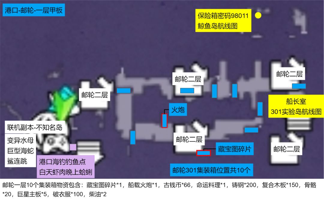 #阿瑞斯病毒2攻略 含船载火炮获取途径攻略 2个船载火炮: ①港口-邮轮一层甲板开最中间的301集装箱获得 ②在鱼魜岛村长处使用古钱币兑换 老登: 目前背景板,疑似龟仙人,盲猜可能和后续龙珠内容有关(猜错了我就修改,当我没说) 右上角的岛: 目前过不去,未填坑