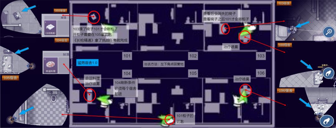 集装箱钥匙分布地点: 1.三层左上角从左往右数第二个房间搜索获得 2.猛男宿舍2.0: (1)机工宿舍 (2)水手宿舍 (3)电工宿舍 (4)外包宿舍 3.安全屋 4医务室 5.餐厅 6.货舱 7.船长室下边下去以后最左边船长宿舍 宿舍物品具体分布: 1.机工宿舍:集装箱钥匙 2.电工宿舍:集装箱钥匙 3.水手宿舍:日记,集装箱钥匙 4.船医宿舍:医疗室钥匙(日记触发) 5.厨师宿舍:餐厅钥匙(日