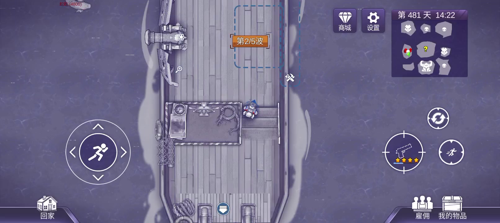 #阿瑞斯病毒2手游 开始下一波的时候,一定要上船的最下面,然后等开始像这样打海蛇,小蛇七枪就够,那个精英蛇的受击面积特别小的看准一些,如果扛不住,可以在脚下丢缓慢回血药剂 不得不说了啊,官方更新,这玩意是真的恶心,对于那些没五星的玩家,真是太有恶意了,特别是那个老精英怪,满血你都扛不住,跟那个加特林一样。