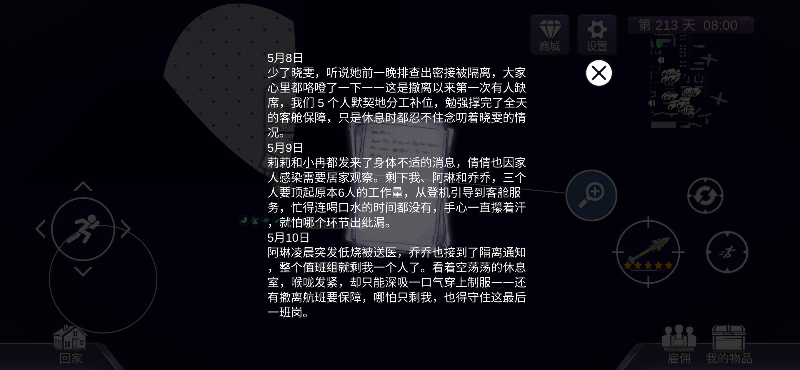 末日下的生活艰难无比,温饱难以为继,在面对自称“鹰眼成员”的人上门邀请时,虽然抱有怀疑的心态,但我依旧动身和妹妹一起前往了鹰眼。抵达鹰眼,看到了鹰眼镇确实和宣传的一样。妹妹选择进入后勤团,而我,深思熟虑后,参加了搜索团的考核训练...在鹰眼镇,搜索团的远征不是唯一的主线。这里的人们乐观积极的生活,我也认识了许多新面孔,晓队的呵斥里藏着深切的关怀;空余时间,我会陪在妹妹身边,在妹妹的碎碎念里感