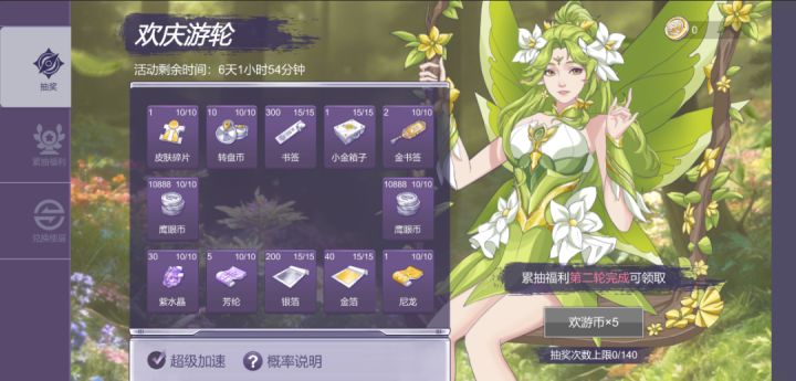 欢庆游轮活动开启,签到一天即得12抽!新增形象【森语】。