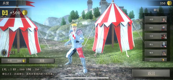 目前兵种比较少,就这六个,给大伙推荐一下1.农民:不推荐攻低血少,10一个,纯纯炮灰浪费金币2.长枪:推荐攻高血多,15一个,最具性价比的近战输出位,攻击高,抗伤能力一般,攻击距离远,关键是便宜,适合爆兵3.弓箭:不推荐攻低血少,20一个,远程农民,不建议用4.骑士:推荐攻高血厚,35一个,比较贵,但是很肉,军阵前面一排剑盾安全感十足,攻击距离近,但是攻击刚刚好能一刀砍死农民和弓箭