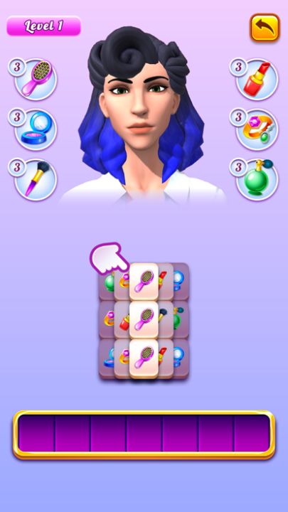 Match 3 tiles by tapping them to apply makeup.