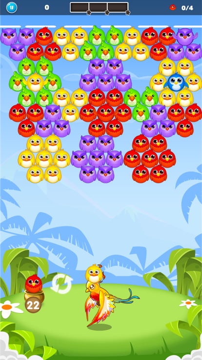 泡泡龙是一款很经典休闲游戏,改版小鸟横空出世,可以说大多数玩家都有接触过这种游戏,玩法大致差不多。就是击中上面的颜色球,尽量给颜色相同的打到一起,这样如果有3个或者3个以上的颜色相同的球就能消除得分。每一关有每一关的难度,所以技术过关的话可以一直玩下去。