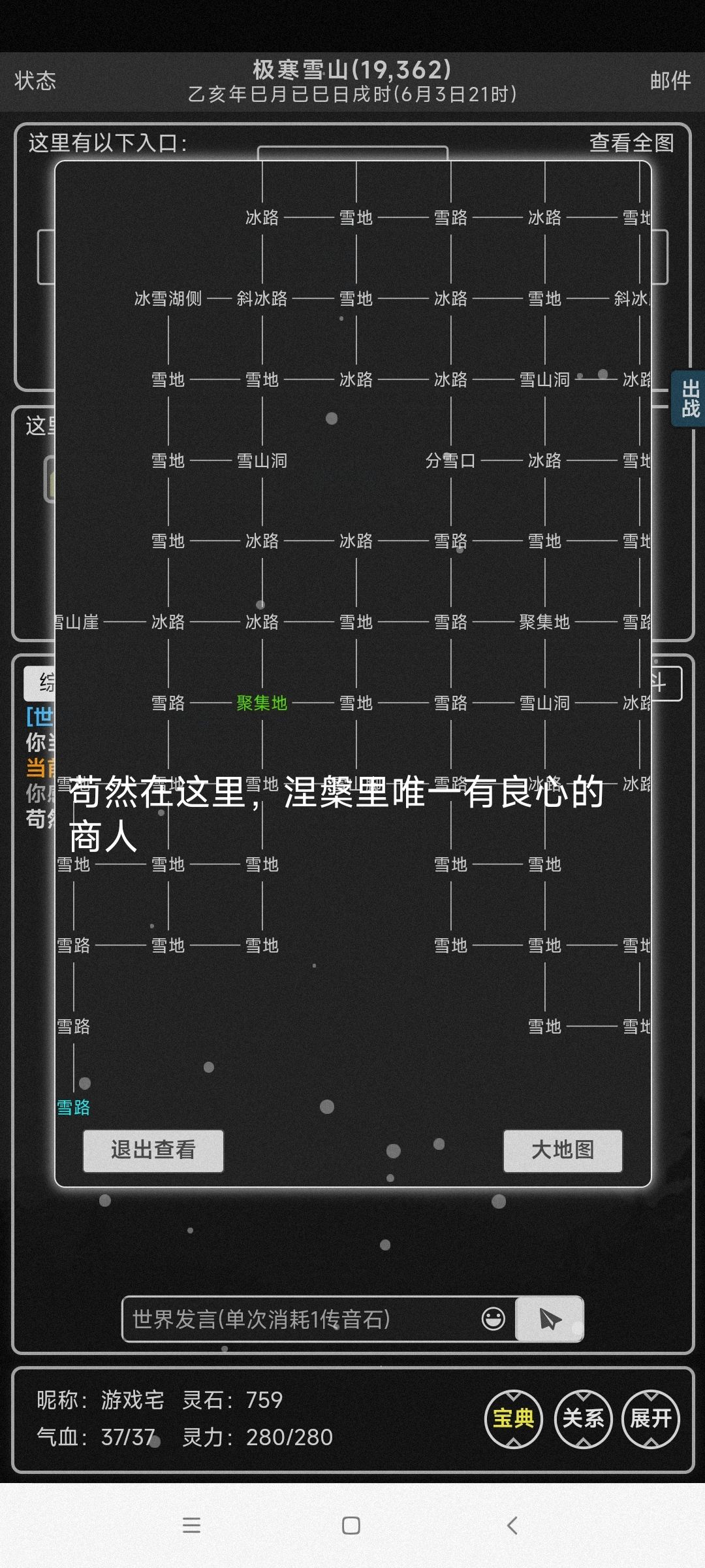 前期的主要目的就是赚取灵石提升修为,为了更好的赚取灵石和增强战斗力,必须得养一只宠物,目前前期最通用的宠物便是雪山的寒冰猛犸,简称大象,你可以委托群中的老祖们,长老真人们,帮你抓取,一般来说3000~4000灵石左右的大象就够你用了 过完主线任务之后记得到玄天宗安神峰购置一处洞府,任务到你前往陆巡师兄住处之后让你练气期再回来,这时候我们的前期主线任务完成了,你就可以自由游玩了 前期去地图上的“野外