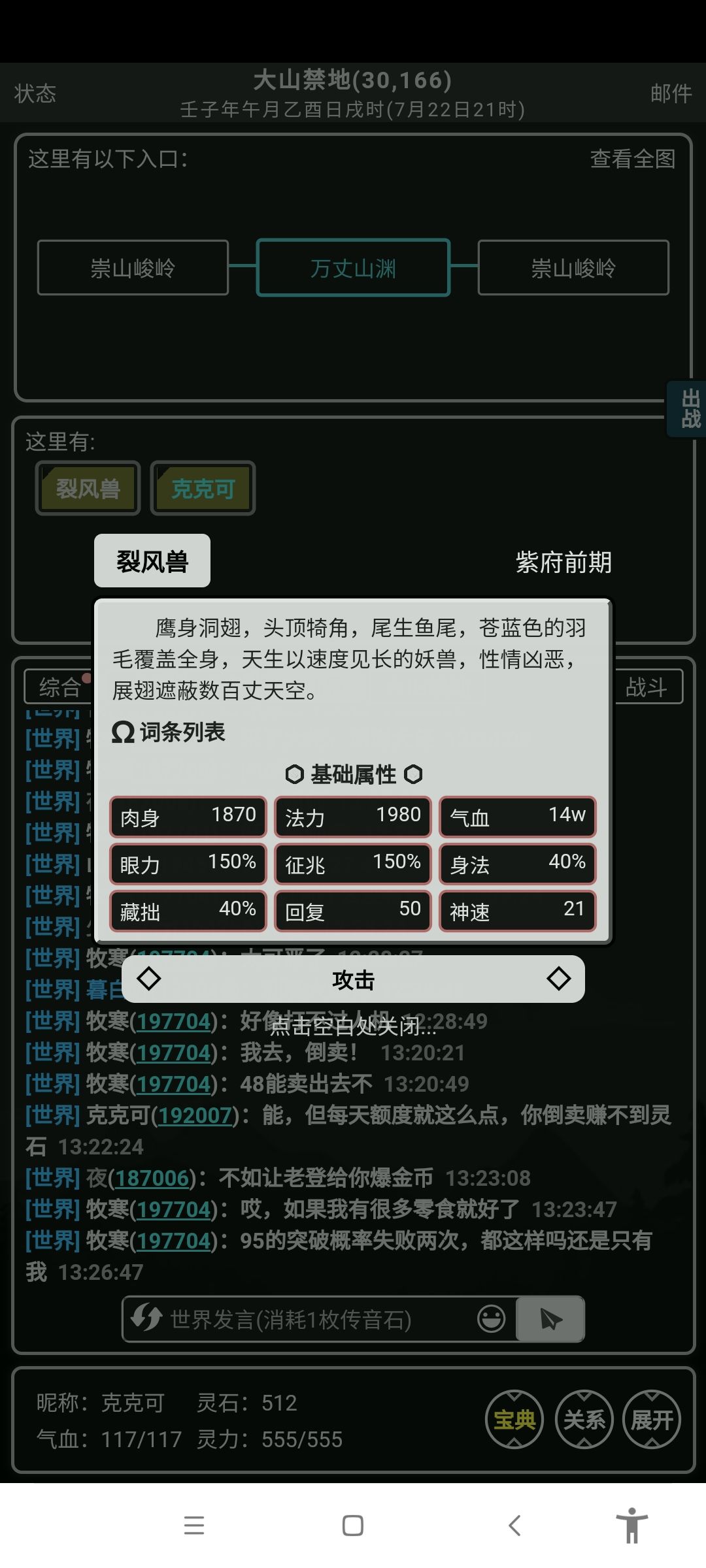 简单来说是:前期打坐,后期打怪。 打怪升级,指单倍体力消耗,打到-800。(-800往下不再获取经验) 但能抗住元婴后期的哀兽之前,打怪升级的效率都有些低,个人不太推荐。金丹筑基练气淬体怪,普遍经验很低,普通元婴怪刷新时间较长,不过也可作为哀兽之前的过渡。 哀兽刷新速度较普通元婴野怪快一倍,修为一只80,一轮10只。分布在离火州,野外五。 紫府开始,裂空300+经验,虚空500+,碧水70