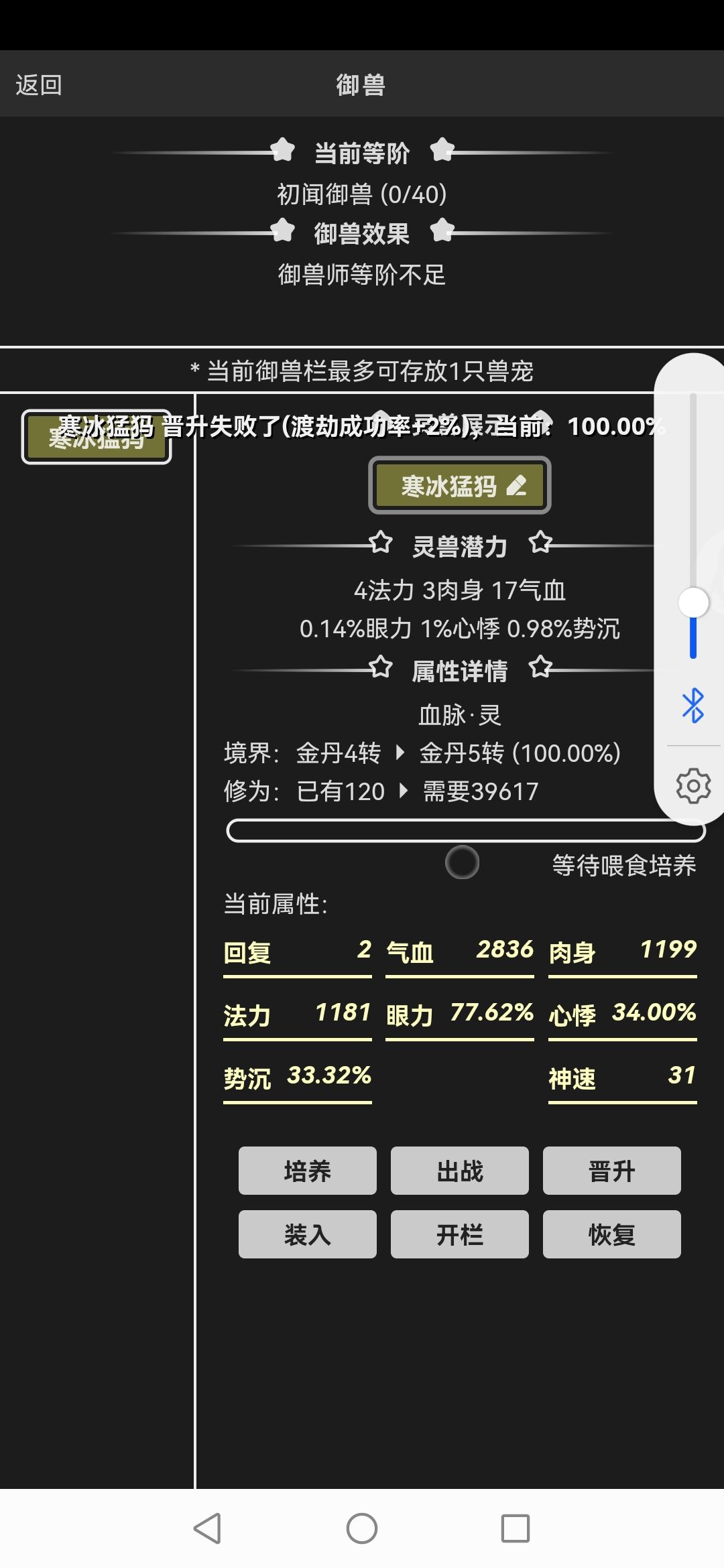 接上一贴 不要吃加血量上限的丹药,有个技能关乎血量永动机,血低就可以永动机。 突破选项有三种,肉身,法力,气血,有时候三个选项可能一样,看脸,除非没得选,不要选血,肉就是防御,法力输出,各人有各人看法,我选择全法(后面的确扛不住元婴怪ԅ(¯ㅂ¯ԅ)),可以肉法适当……打元婴怪可以猛犸扛,叠毒磨死(扯远了)但拉不住仇恨,扛不住就是死字。 每天的问心别忘记了,在平安镇(好像是这名字)书啥来着,有