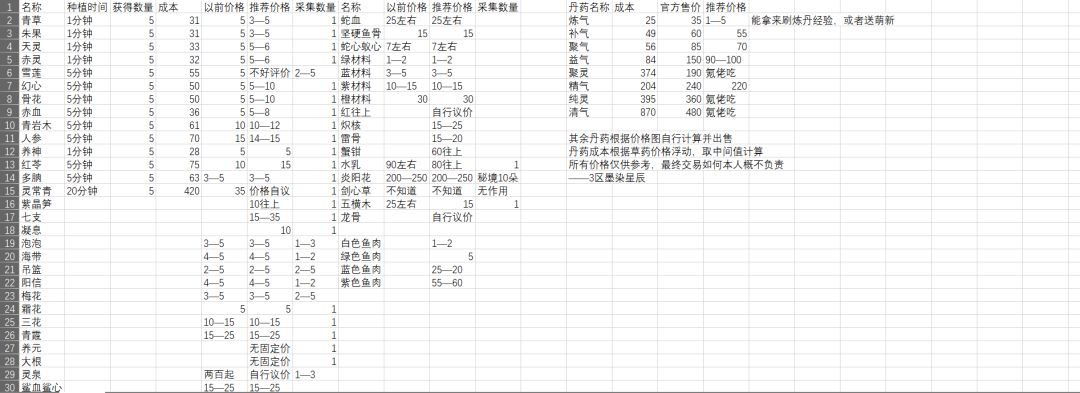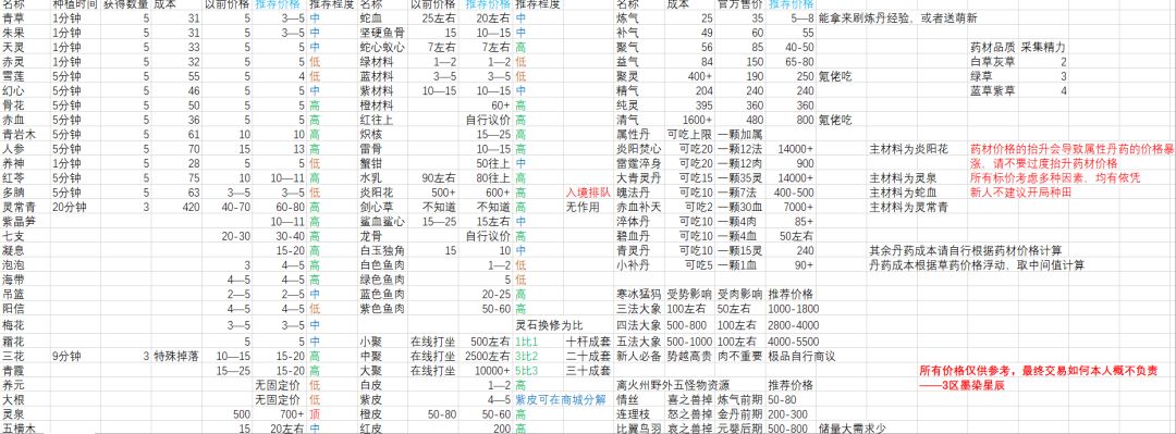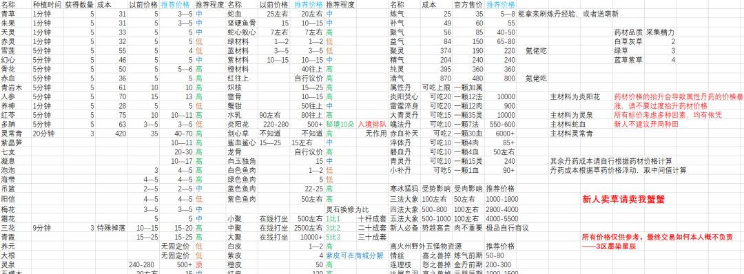 许多萌新看攻略知道了大致的发展道路,这里附上一张中州一区物价图,祝小登们早日结婴,开宗立派。 我是中州一区陈则龙,中登一个😀,修行46载(骨龄46)#涅槃