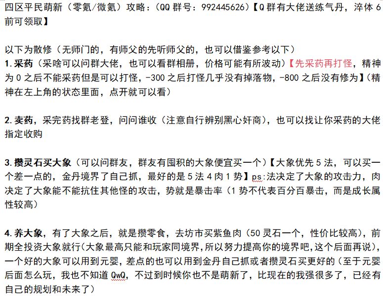 我是新人引导者 -- 蛊仙!!现在推荐大家优先选二区。[表情_送花][表情_送花] 我作为一个散修,如履薄冰,筚路褴褛走到现在,最清楚散修孤身一人的艰难。所以我最喜欢投资新人,带他们熬过艰苦的原始积累。[表情_酷][表情_酷] 现在新人进来可以找我贷款灵石,额度如下:淬体一千,练气两千,筑基三千。等你们到了金丹期可以自给自足的时候,区区几千灵石也就小问题了,再还我这六千。当然,如果够富的再多给我1