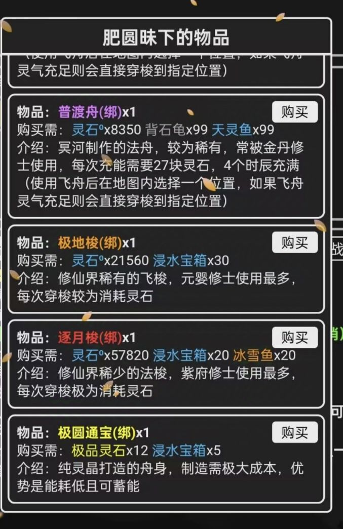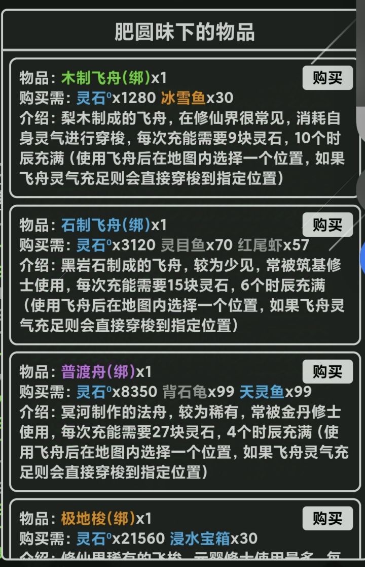 这是我钓了2个星期在各个地方整理出来的能钓到的鱼,其中要是缺少的评论区可以补充。 1:鱼饵可以摇桃树,或者雪山聚集地购买,药神谷也有桃树,需后撤几格冲进去。 2:不同颜色出售的绑灵价格不同,除了几种能兑换飞舟的鱼,其他的目前可以直接出售。 3:稀有鱼类和浸水宝箱,普通鱼类与收钩速度有关,快速收钩稀有鱼类概率更高 4:每天有100次左右的甩钩次数,对不需要后几个飞舟的浸水宝箱可以直接开启,概