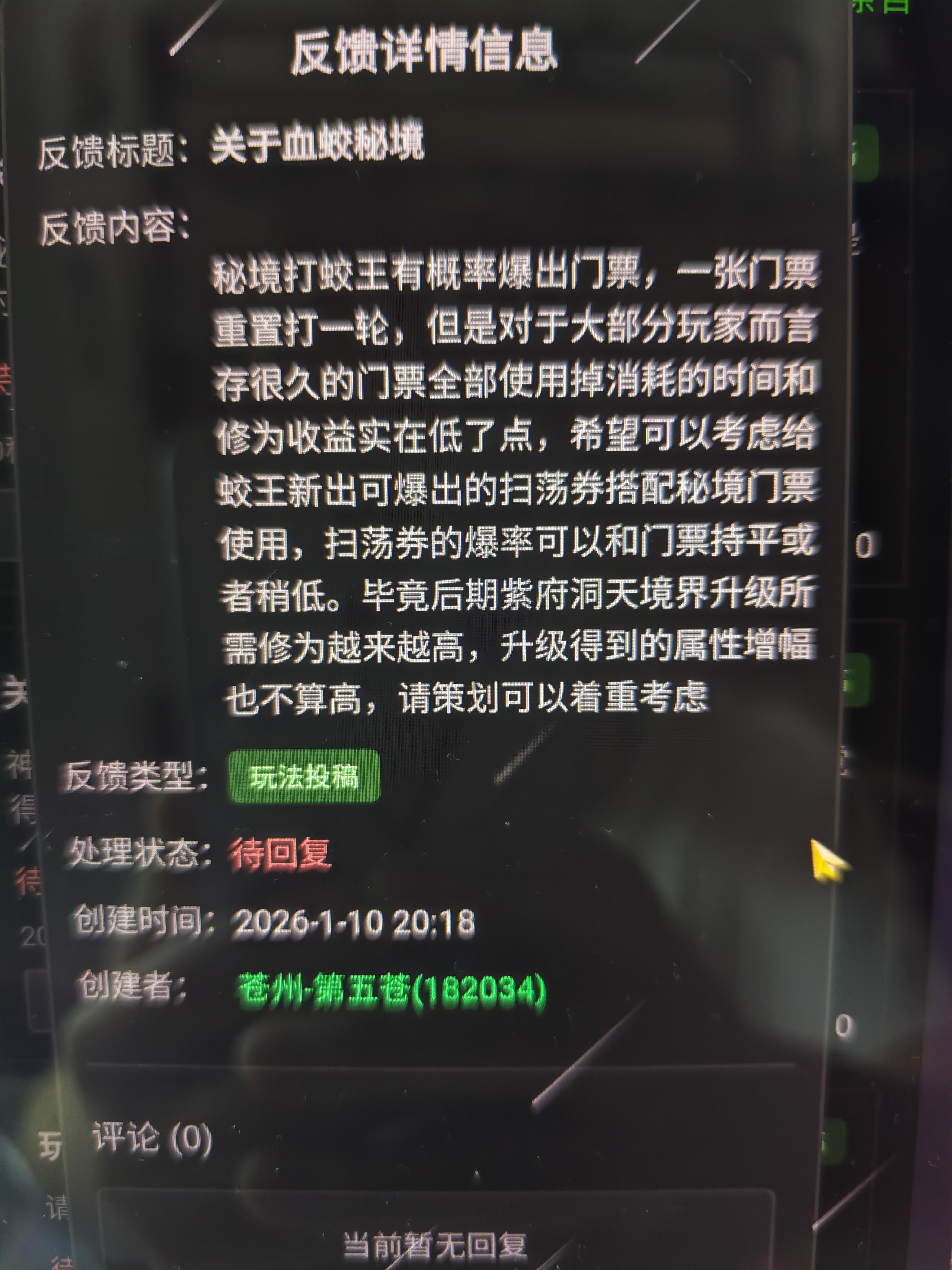 关于血蛟秘境的小改动,希望策划能认真考虑