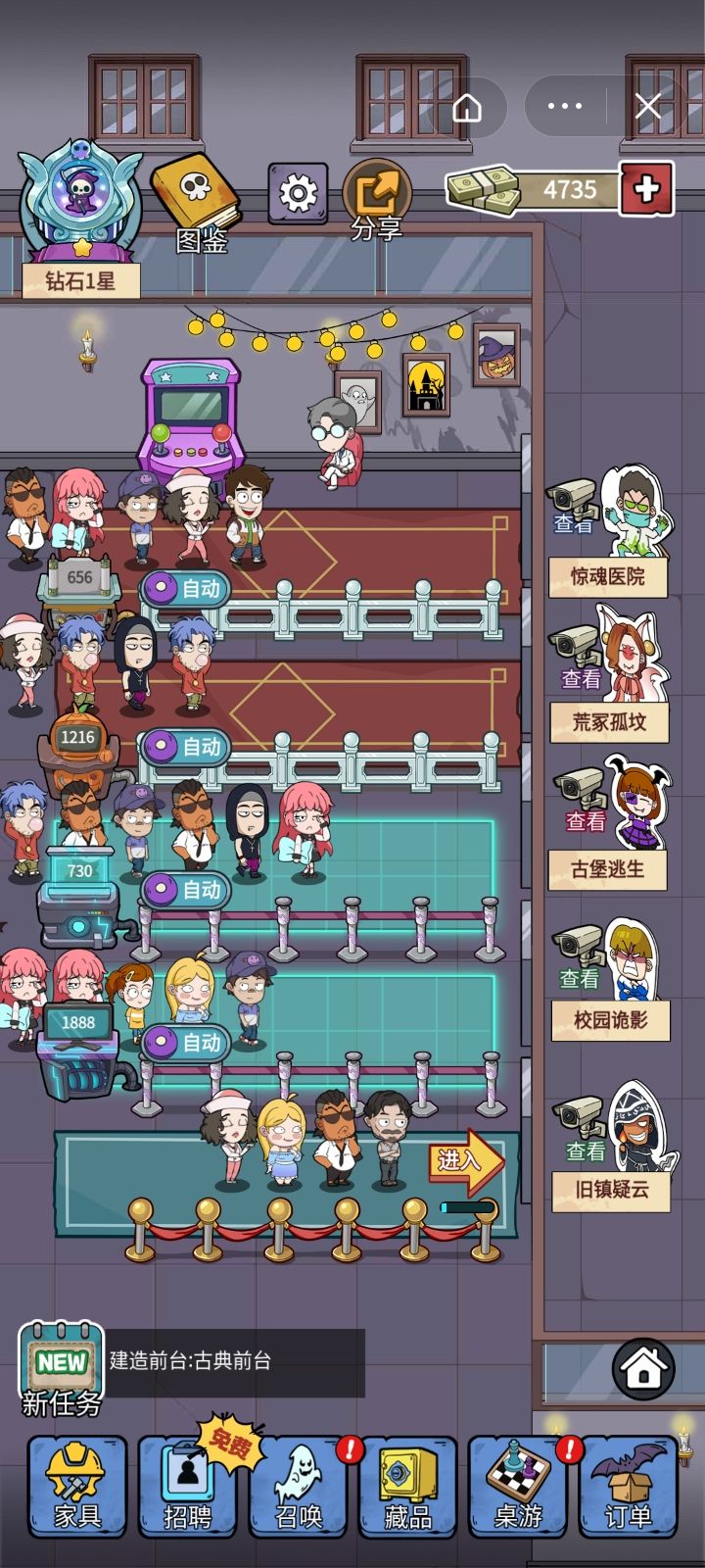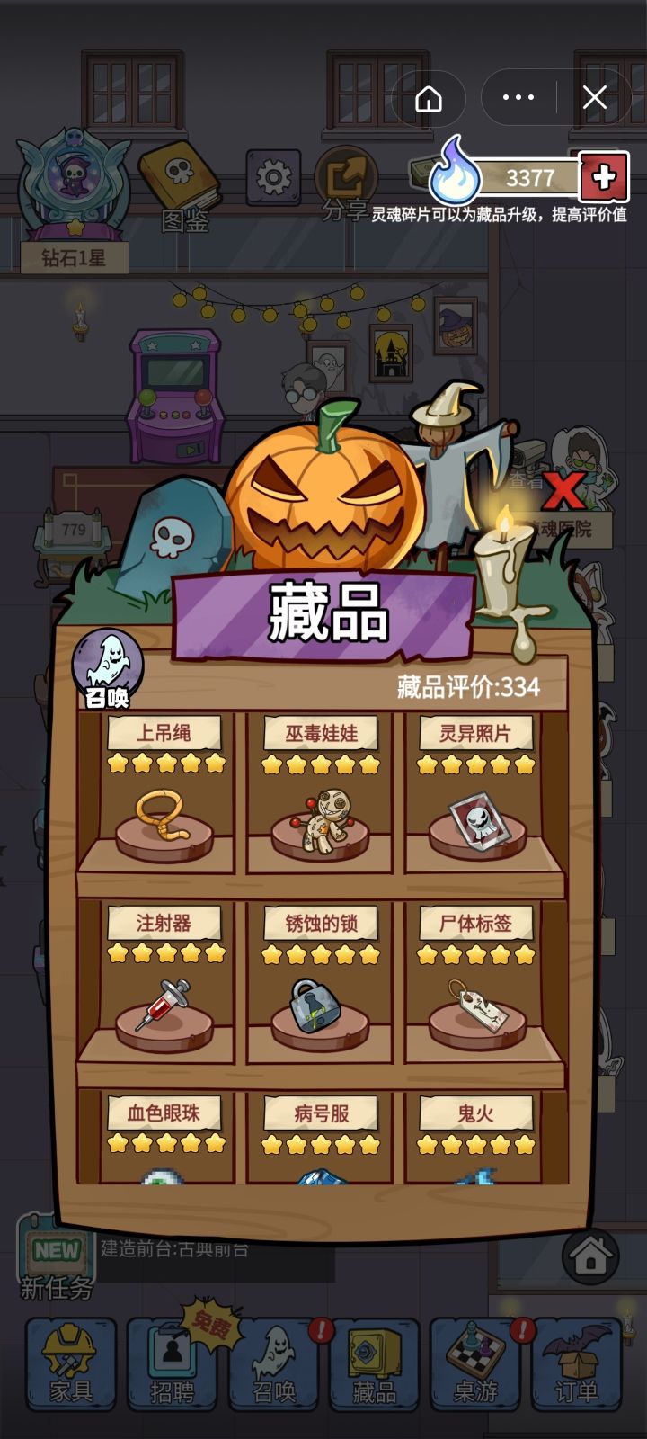 越到后面越要看广告,越到后面购买东西的钱越多,重点是赚的少,只能看那个广告加双倍.真不知道为什么,玩着玩着我那个藏品莫名其妙的被我升到了满级(前提是我有那个藏品)而且还剩了好多灵魂碎片.