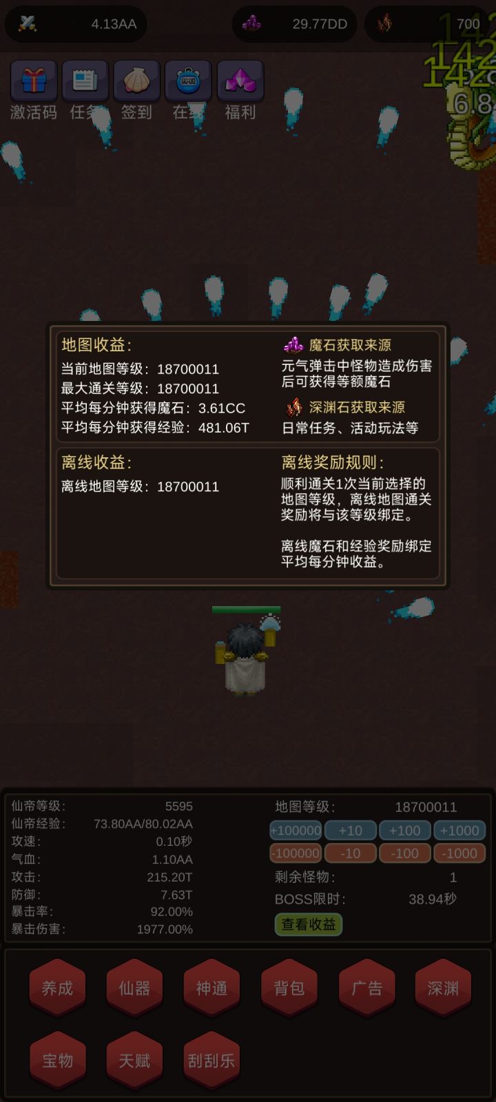 弄个境界系统吧!可以用魔石提升境界另外全属性加成