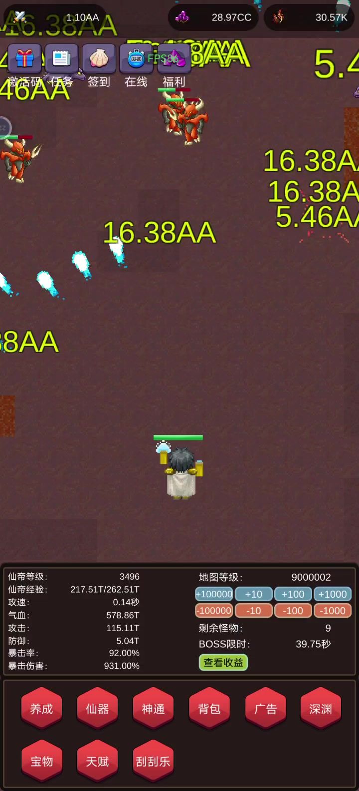 分裂升级到一定次数会直接卡攻击,存在bug。而且还没有重置按钮。这样的话我们只打小怪不打boss,虽然对于零氪玩家会少很多收益如碎片之类的会没有。方法:连点器设置在-10层那里每四十秒自动点一次,大概11个小时会降1w层。