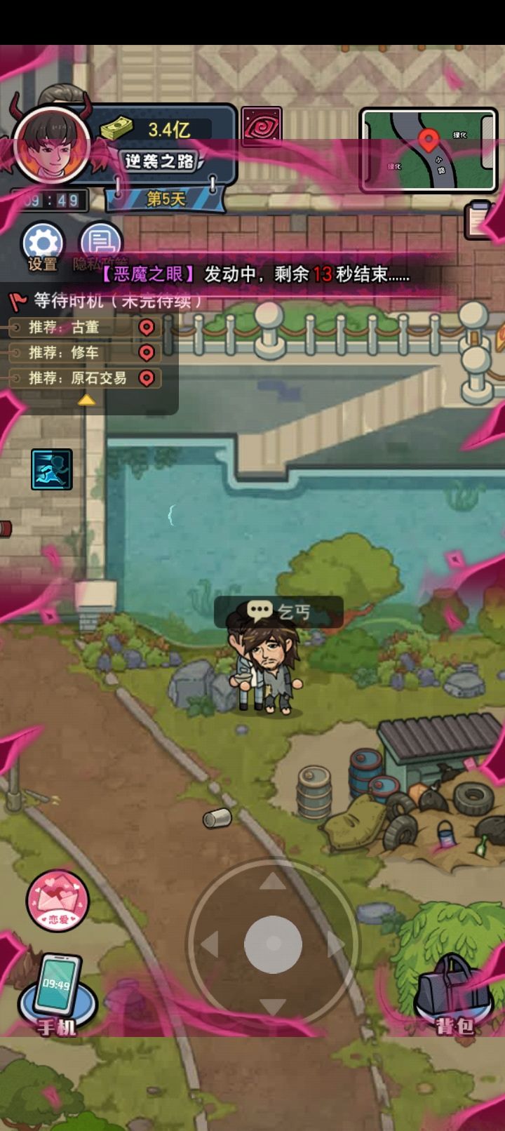 赚钱收益:捡垃圾少,翻垃圾堆少,送快递少,赌集装箱、彩票、唱歌适中,赌石多但需刷广告,修车跟古董非常高,无需刷广告但距离较远需一直跑路,虽然买了车但不能开。