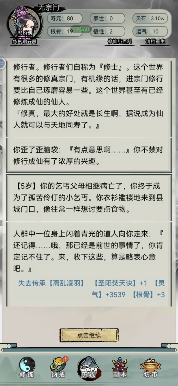 我这20家世,0运气,0悟性,0根骨,开局,卡着练气不升筑基,家族每10年都送东西,吃寿命药根本死不了无聊尝试不同玩法