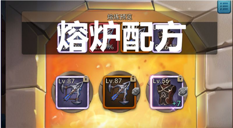 #熔炉 四绝,四速,四回做法 首先锻造或挂图,出蓝色,紫色衣服,头盔(锻造就只要衣服,挂图可以用头盔,前期没有锻造材料,图纸,只能挂图) 出了底材把带绝防的留下,紫色单,蓝色单都行 然后用单紫+单蓝+单蓝熔炉,变成紫2或者蓝2留着 如果还是1也留着继续上面操作,变成2为止 当你有了两个紫色2或者蓝色2以后,开始第一步,用两个紫色2+30级蓝色目标装备熔炉(这里根据你底材等级,决定用多少级目标装备,