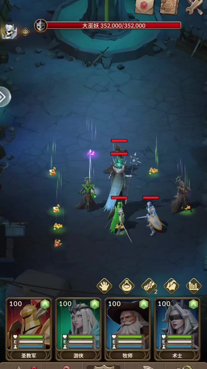 为了模拟新人状态,装备基本全脱了。尽量靠机制不靠装备数值。 开荒阵容推荐2 - 禁卫军+寒冰射手+暮色女巫+牧师。 转职暮色女巫和寒冰射手。 这个阵容的用法也是需要开场先冰冻和砸陨石控制住BOSS一段时间。让暮色女巫上诅咒,冰弓上冰冻。 冰弓的特点是能减少BOSS 50%的速度,而且叠很快。 暮色女巫是减少BOSS 70%的伤害,叠的速度一般般。 相比于只有一个暮色女巫的场景,暮色+冰弓可以把BO