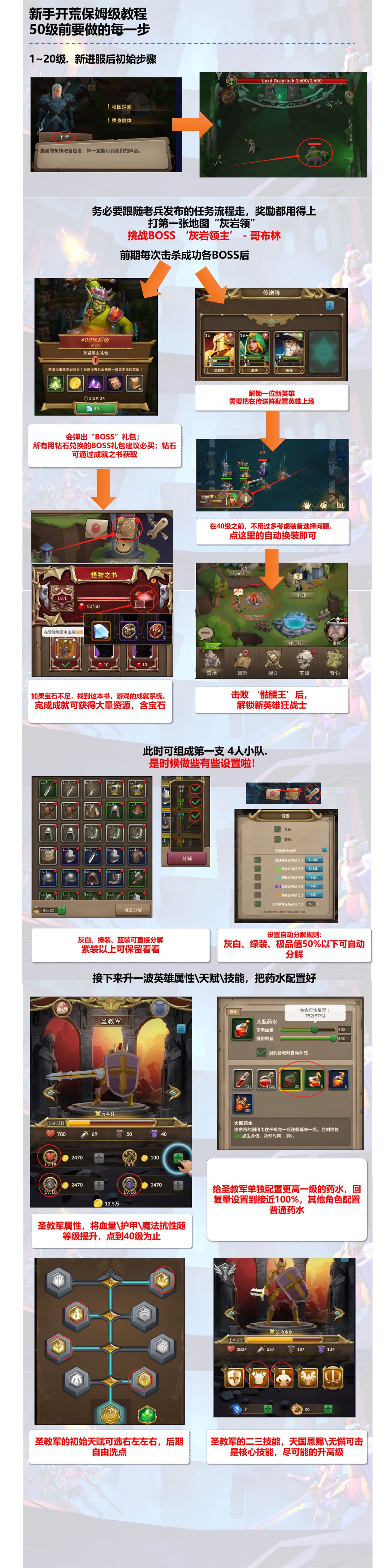 1.阵容:禁卫军弓箭手、术士、牧师 2.天赋:禁卫军(下到上)主守护:右左左右,副生机:右左左。弓箭手主爆发:左右左右,副掠夺:右左左。术士主巫术:右右右左,副掠夺:右左左,牧师主掠夺:右左左右,副巫术:右左左(50级可以重置) 3.各地图开通功能:开沙漠地图开交易所和熔炉,开藏宝图。通关沙漠地图开转职。开荒原地图开通装备强化功能。 4.转职顺序:公认就是第一个术士转女巫,第二死骑转骨骑,第三个,