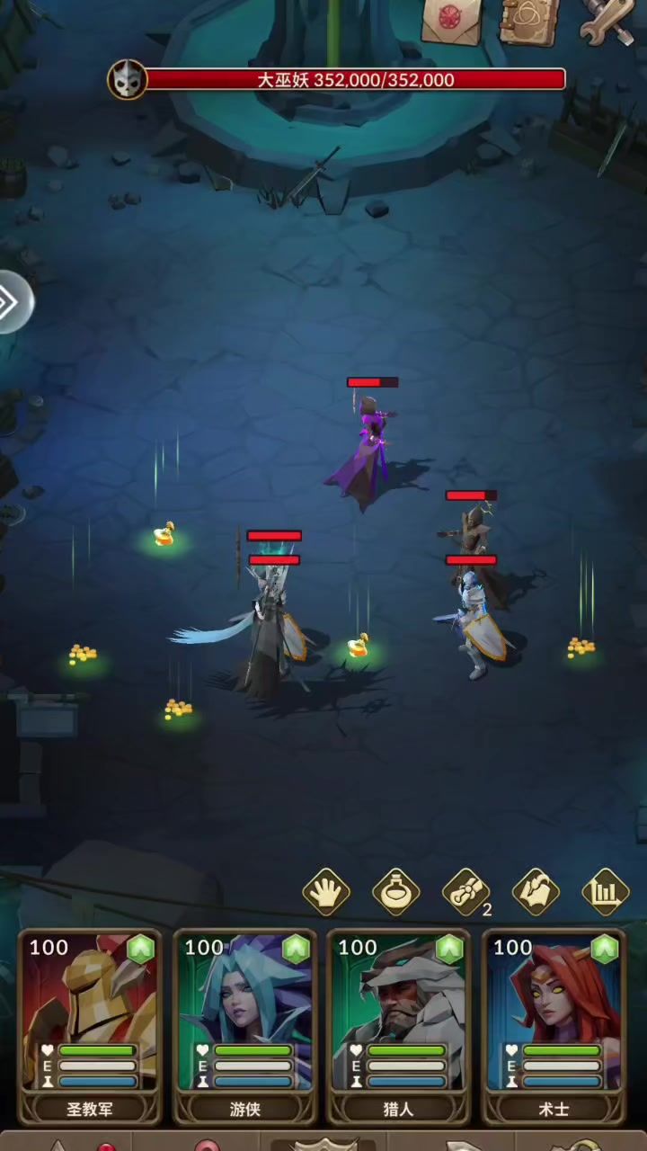 为了模拟新人状态,装备基本全脱了。尽量靠机制不靠装备数值。 开荒阵容推荐1 - 禁卫军+骨骑士+暮色女巫+神射手。 转职暮色女巫和骨骑士。 这个阵容的用法是,开场先冰冻和砸陨石控制住BOSS一段时间。让暮色女巫上诅咒,骨骑士开始召唤。 等暮色女巫诅咒叠上七八层后,BOSS的伤害就降下来了,威胁不大。 骨骑士能同时保持小骷髅在场,死了一只立刻召一只。 即使圣教军不幸倒地,也有小骷髅先扛着。圣教军回回