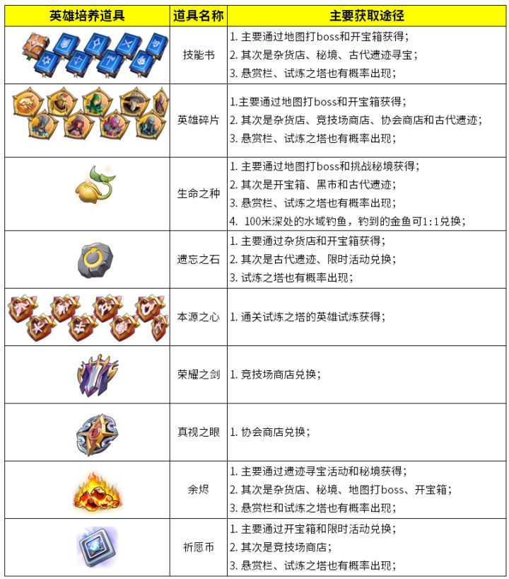 🔍如何获取英雄培养道具?