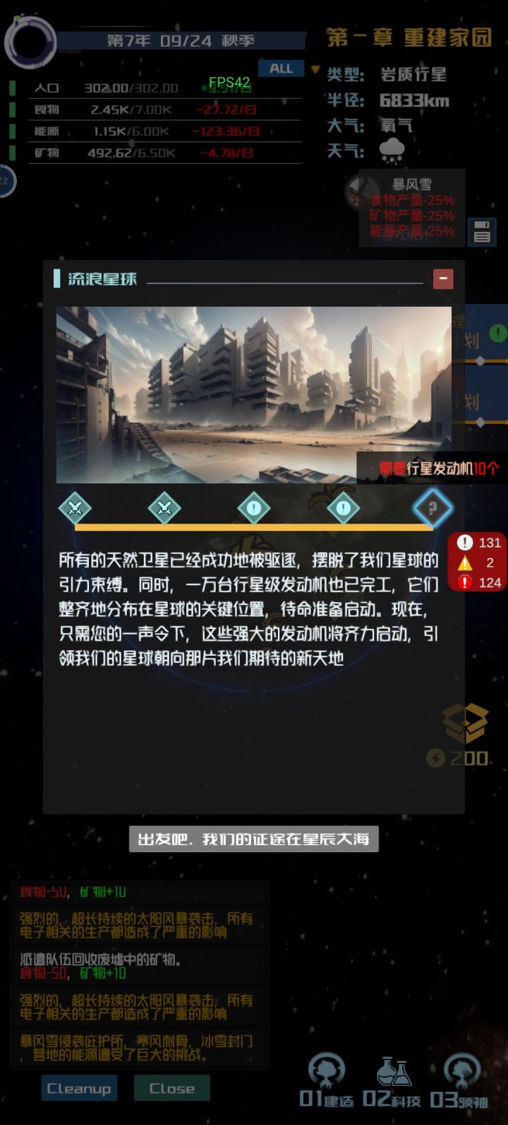 建造十个行星发动机才能活,问题是建第五个的时候,需求量就已经比库存上限高了。。。问题是这个库存上限是没法提升的。另外,庇护所和庇护所聚集地的矿石和食物需求一下子从4k涨到十多k,策划不觉得有问题吗,就强行卡人口呗。。。还有其他类似的情况还有很多,真的不当人强行让我输呗