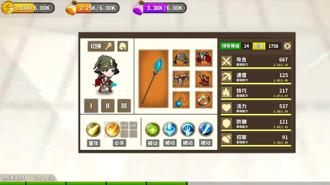 92级的boss对我1级木乃伊一点办法也没有。 主要配套如图 主角法带火球和回响法杖,最强输出,持续加攻 火女,次强输出,持续加攻 大嘴花,普技均为aoe,持续加技和速,为主力输出提供养分。 魔女,持续给护盾,有效保证2个木乃伊站得住。 木乃伊,真神也,不升级也可以硬抗。其中一个满级,一个是1级。区别不大,大大减轻升级压力。