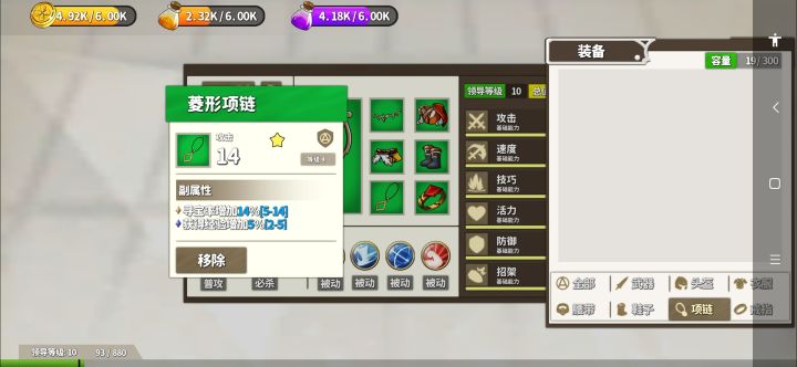 1,第一重要的东西炼金粉尘,打造装备、并提高打造装备等级上限。这游戏佩戴装备没等级限制。只要有材料一直打造装备就行。主角是主要输出!输出全靠装备!装备等级!装备等级!还是装备等级!有了等级其他都是渣渣…2,第二重要:金币,招募好属性随从必备,(招募前提-通关第二地图即可解锁招募野怪、同时也解锁孵化巢穴)普通野怪都可以招,点击野怪看属性。3,灵魂粉尘:唯一优点升级随从、另外就是制作符石(只要装备