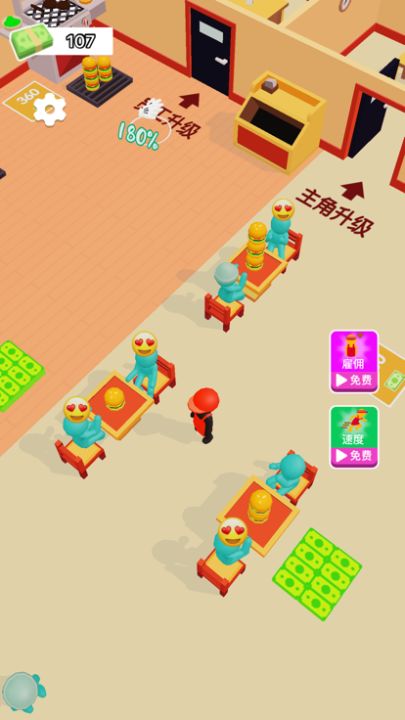 1. 游戏目标:制作、升级汉堡包及其他零食、饮料,吸引顾客参观和购买商品,服务好每一位顾客,赚取最多的金钱,建设梦幻小镇最棒的汉堡餐厅!