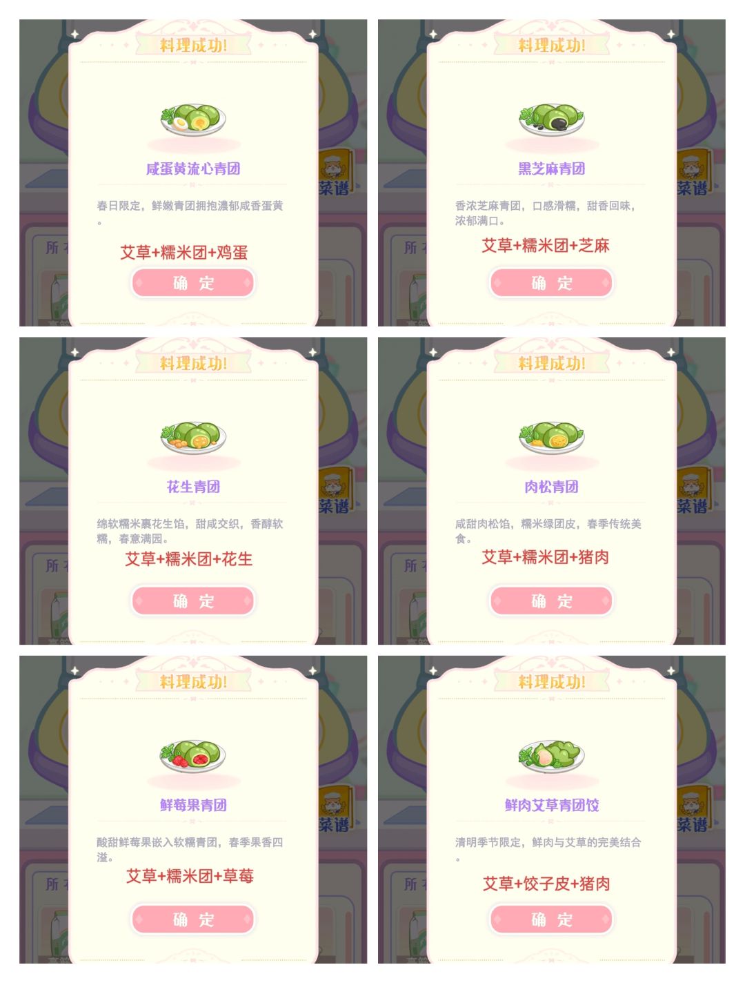 1H30MIN 艾草+糯米团+鸡蛋=咸蛋黄流心青团 艾草+糯米团+芝麻=黑芝麻青团 艾草+糯米团+花生=花生青团 艾草+糯米团+草莓=鲜莓果青团 艾草+糯米团+猪肉=肉松青团 艾草+饺子皮+猪肉=鲜肉艾草青团饺 ————————————————————— 避雷ϟϟϟ(用下列组合会浪费材料) 艾草+糯米团+鸡腿/三文鱼=日式团子 艾草+糯米+饺子皮=糯米烧卖#花花与幕间剧