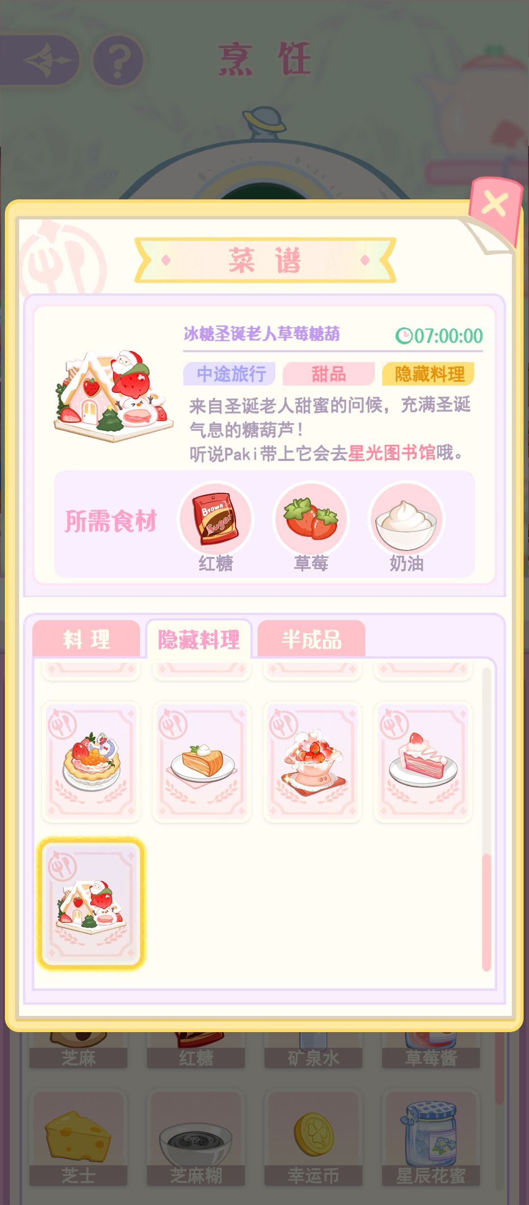 Paki爱甜品,Peacoo喜西餐,UNO好新奇食物。收集食材,准备菜谱,烹饪美食以满足各角色口味吧! 甜品类 西式餐点 新奇餐点 普通餐点 半成品 烹饪高效指南:128款菜谱(含半成品,按制作时长排序) - TapTap #攻略 #游戏攻略 #游戏推荐 #休闲游戏 #二次元