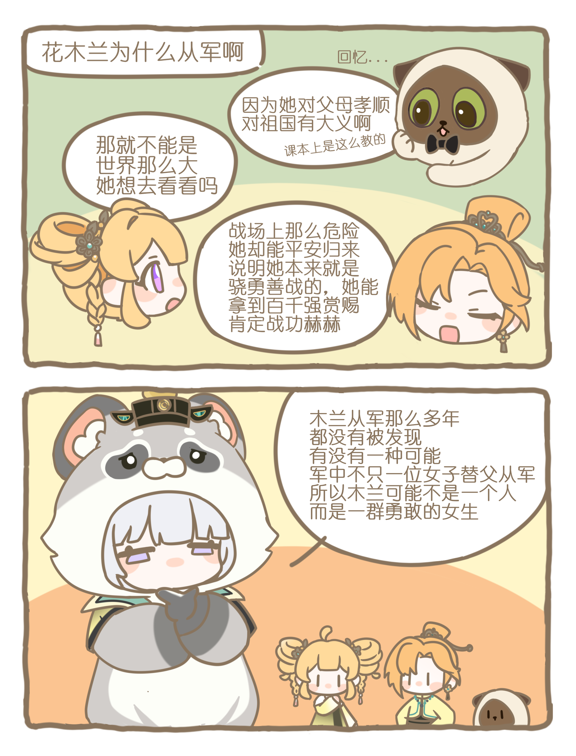 花木兰版本现已开启! 潜伏的totoko早已注意到这次的版本设计和选题大家都非常喜欢! 木兰精神Power++++ totoko随机抓了几位研发老师给大家分享花花研发制作的幕后故事,诚邀主理检阅星光镇年度建设工作汇报~ 以下为采访省流版: 00:03 她是谁?从替父从军到自我实现 01:23 传统文化的传承和表达:皮影戏载体的创作 02:54 传统文化的传承和表达:游戏内服装的设计 05:37 剧