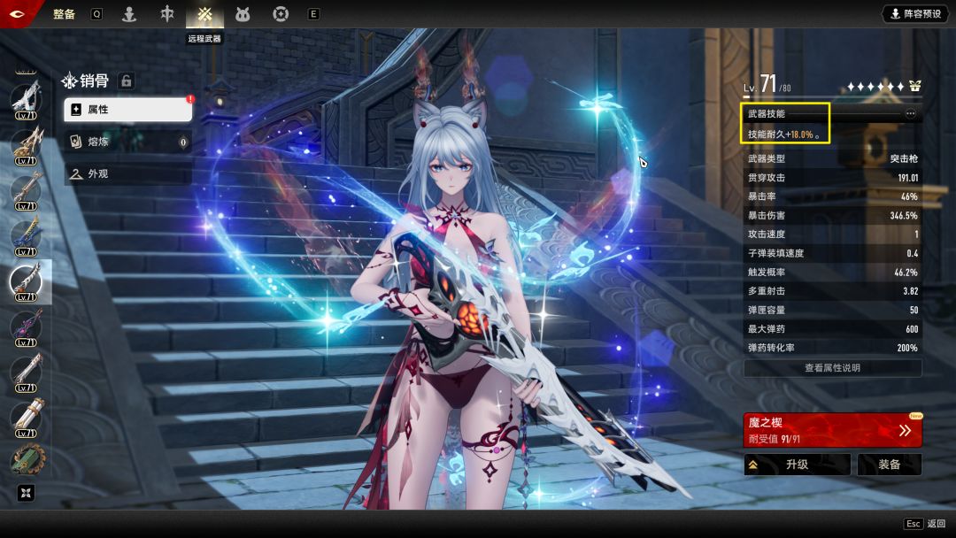 HI,各位狩夜人们,我是爆老师,本期对二重螺旋中重要的养成体系-魔之楔由浅入深的介绍,话不多说,开始上菜! 一、功能 1.界面:先进入整备系统(PC端按C即可快速进入) 右下角点击大红按钮即可进入魔之楔系统内 2.功能介绍 其实魔之楔就是二重螺旋特殊的,对于人物、近战/远程武器的庞大附魔系统,在各种附魔材料的加持下提升各狩夜人的战斗及生存能力。 (ps:懒蛋型选手建直接一手自动装