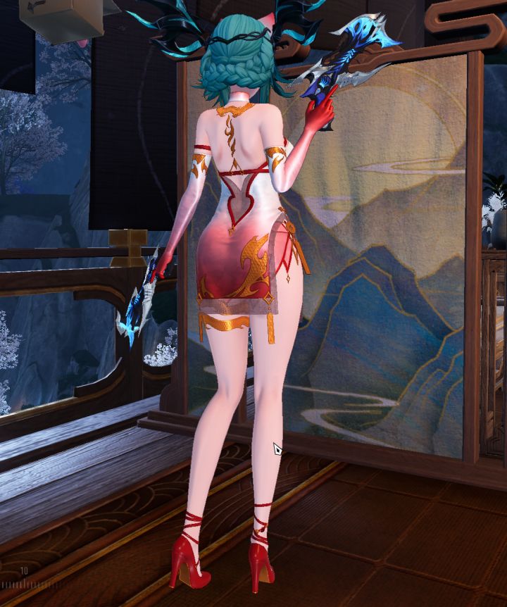染颜色区域还是没那么自由,裙子居然跟手套是一个色区,裙子上的橙色图案高跟鞋底也是橙色的。有点可惜,还想染黑底的,但是图案是黑色又不好看,用挺少的染色剂。