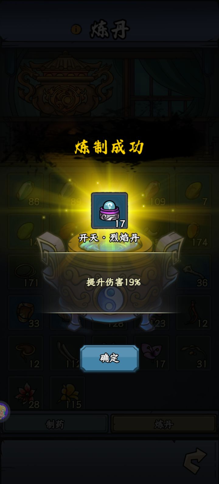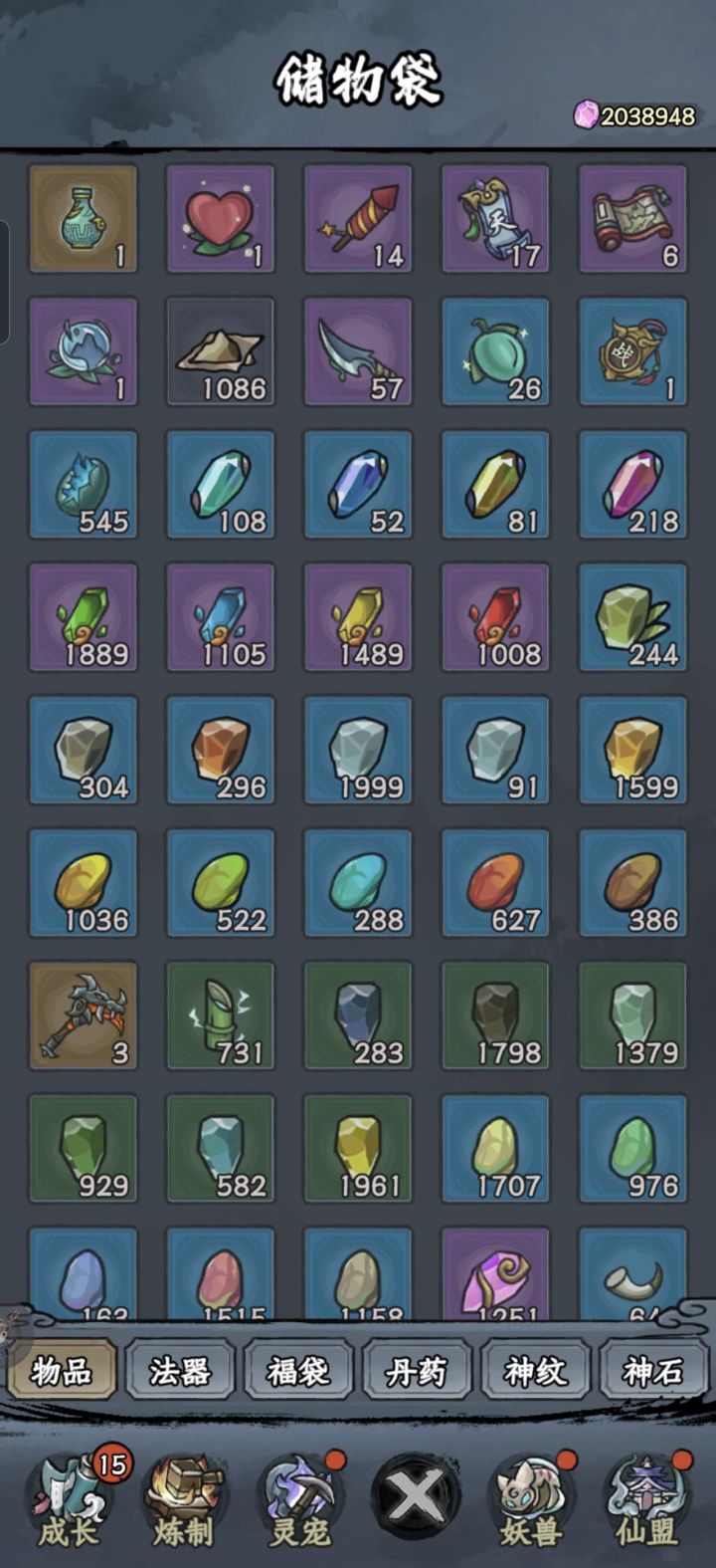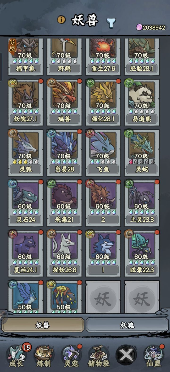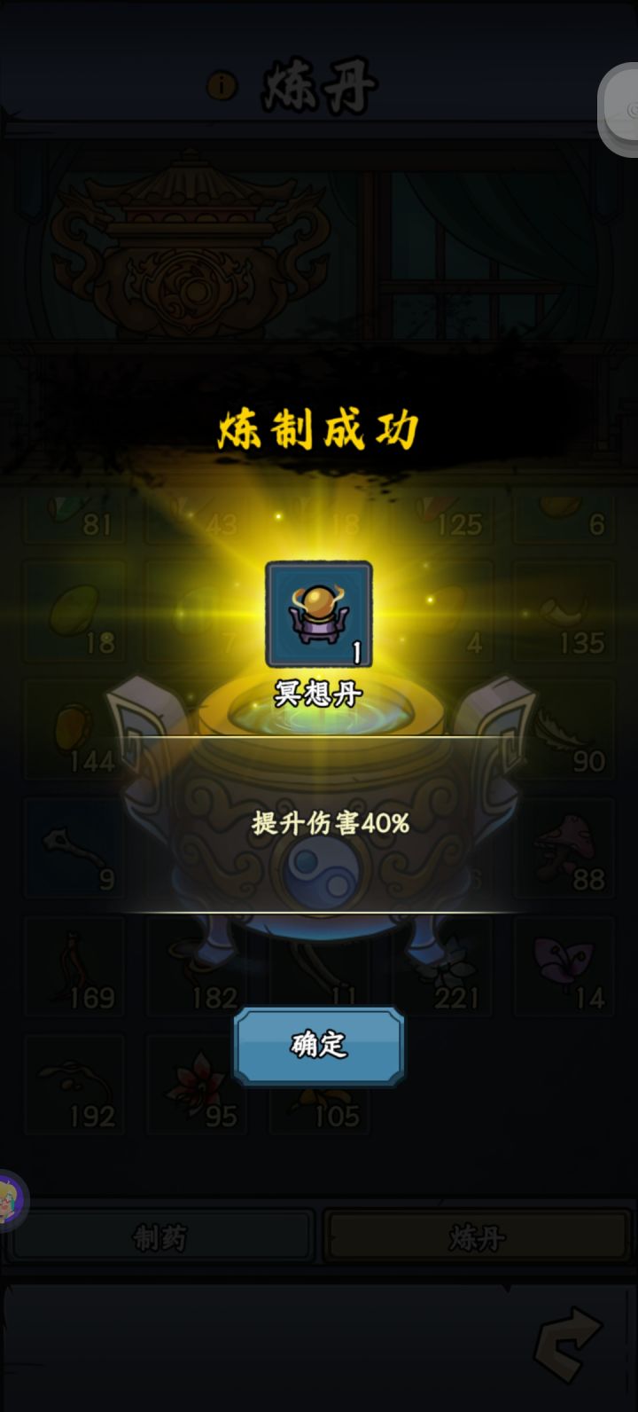 别老是听大家说的做炎套。做炎套节奏太慢了而且还没啥萌新完全没有这么多图纸和材料做装备。我是玩暴击吸血眩晕闪避全修(前期暴击吸血,后期加个闪避和眩晕)目前要不是等级不够卡元婴中期主线应该都可以通关了但是目前也只需要两件金色装备就行,打老秃驴的时候没截图,但是是六点八万战力过的,释能是八到九万战力过的套装不是最重要的,目前游戏难度其实并不高,一件金色装备远不如一件词条好的紫色装备好如果实在卡住,炼