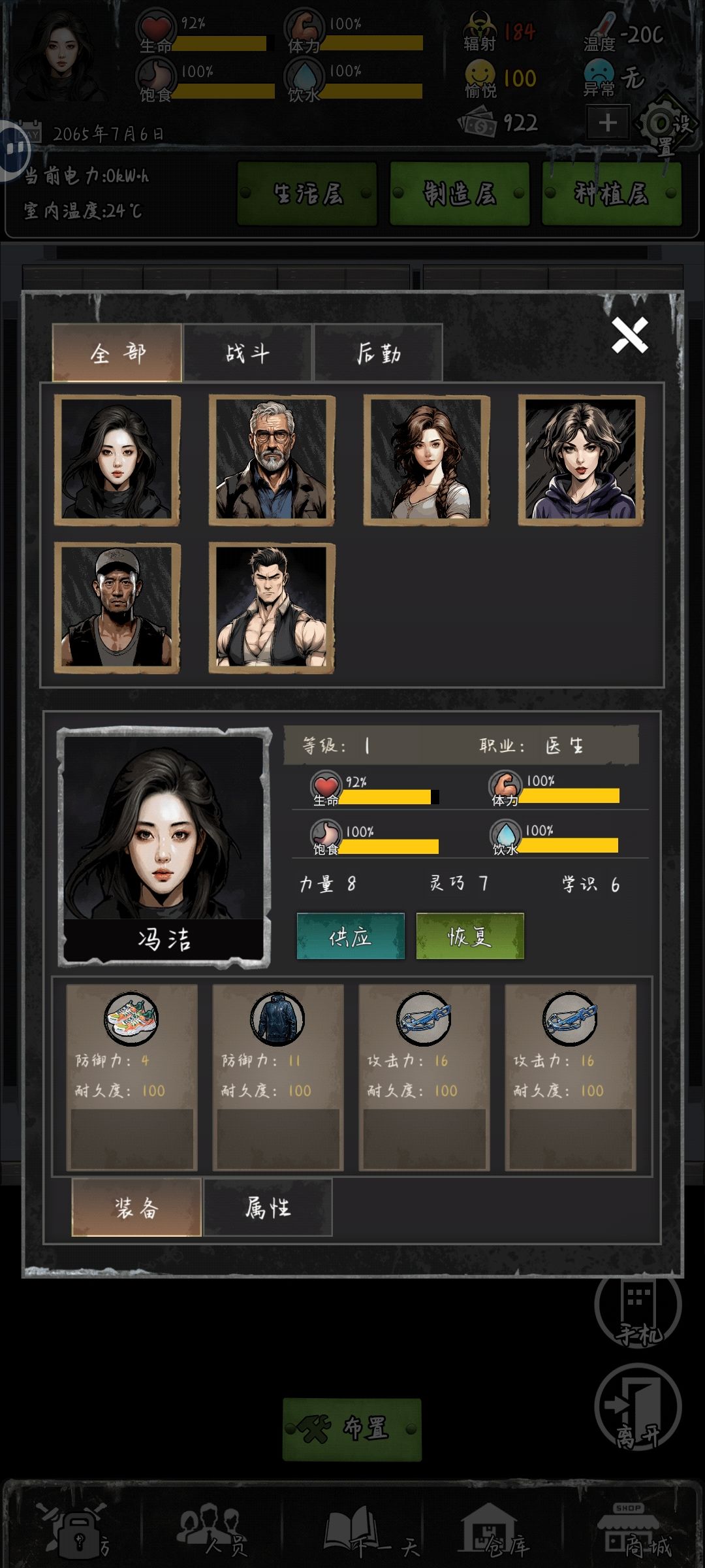 [表情_星星眼]游戏内票票可以任你自由购买物资!虽然花钱很快但还是喜欢这个设定!家具可以自由点击探索!这个也有意思!另外要不是能看广子领钱真要活不下去了哈哈哈,前期建议疯狂刷广告攒物资![表情_泪目] 我走的剧情:租别墅,贷款,最贵防护建筑,手机联系的朋友都拒了(就算有什么美好剧情在等我也不要,就怕末世久了人心叵测) 第一周 [表情_微笑]1,种植区加工区希望能加个图标,能看到种植制作的是什么东西
