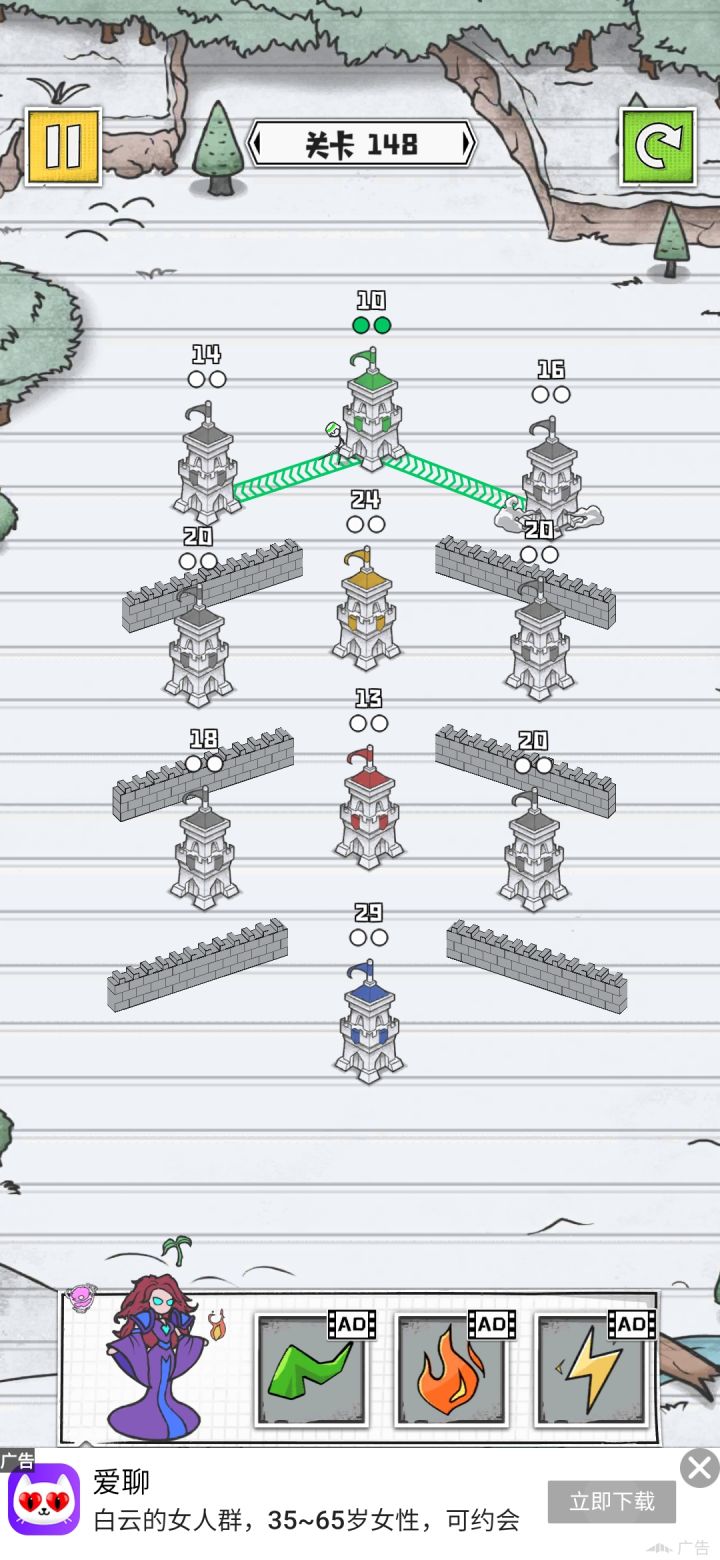 玩家可以通过关网,获得较为良好的游戏体验,在玩法上,玩家通过在两个塔之间连线,可以不断运输士兵,并根据塔的性质,又分为基础兵、骑兵(攻塔能力更强)、盾兵(野战能力更强)。
