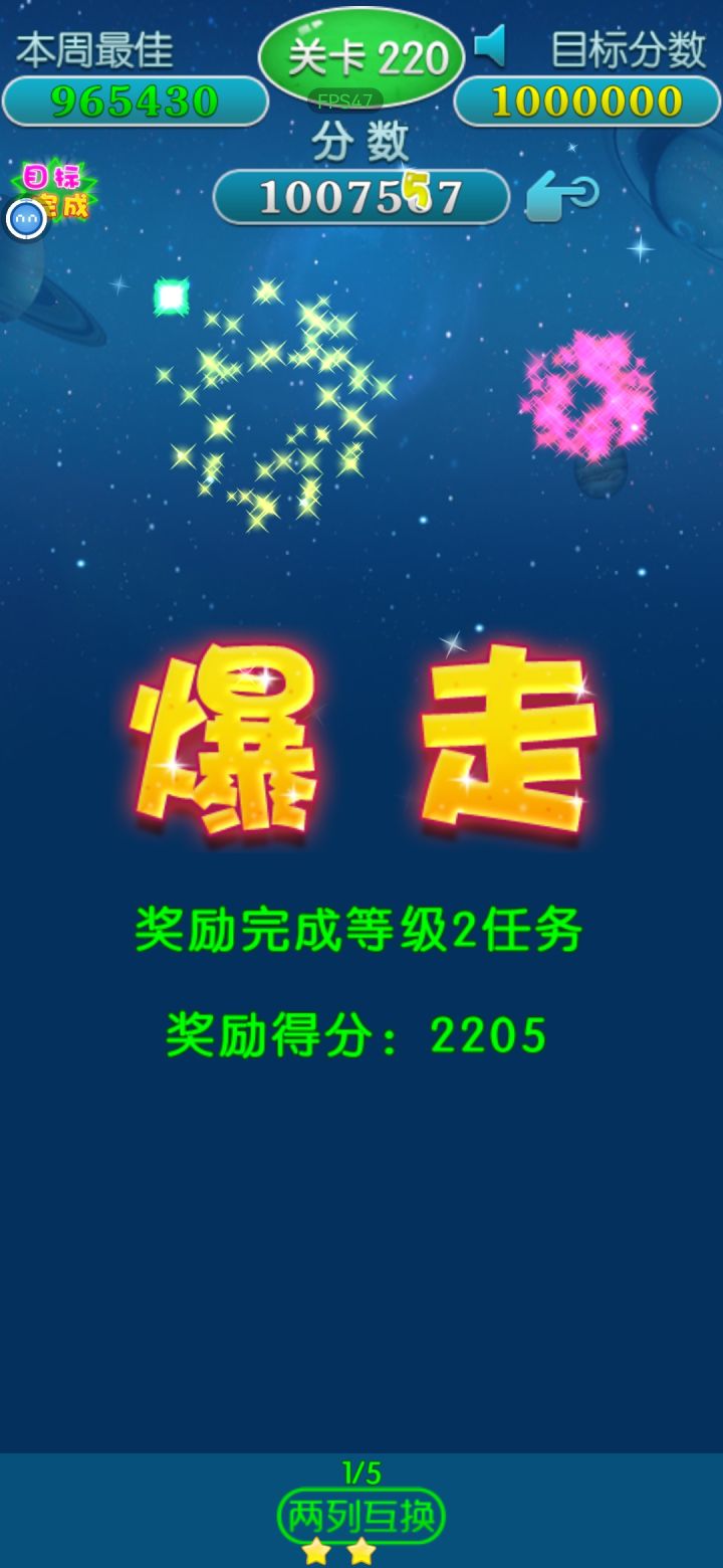 关键是增加了爆走,当把所有星星都消灭掉后,完成爆走,奖励之前一次最高得分,至少2000。