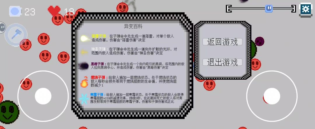 挺爽的肉鸽打怪能升级,升级可以选不同的炮塔,炮塔的一部分属性能反馈给自身,相当于变相加点,升级给的炮塔不会消失而且打够怪以后可以升级,有穿透,射程,散射,雷火冰,弹夹一些很爽的属性,就是游戏不稳定吧玩了一会卡退两次,还有一些被动增幅,第一次通关的就是雷属性的炮塔,相当爽散射穿透多重雷属性打击冰冻火焰。希望作者可以多开发一些关卡(附上通关视频)#新年新安利#游戏安利#游戏推荐#单机游戏
