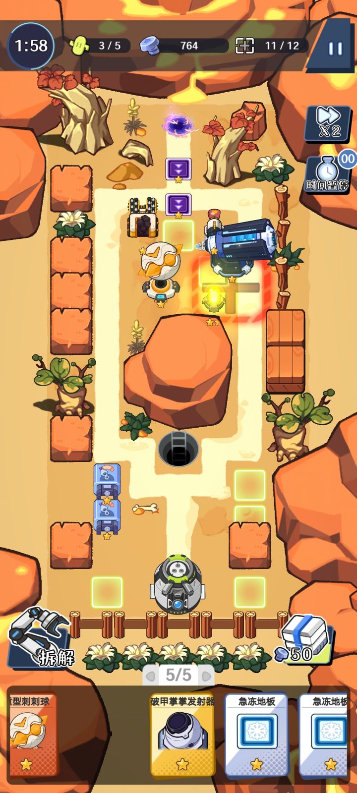 在关卡内,可自由收纳+升星+摆放+选择攻击方向,除开收回卡池需要冷却时间外,其他均无成本,只需要手速够快(推荐倍数X1)便可查缺补漏。