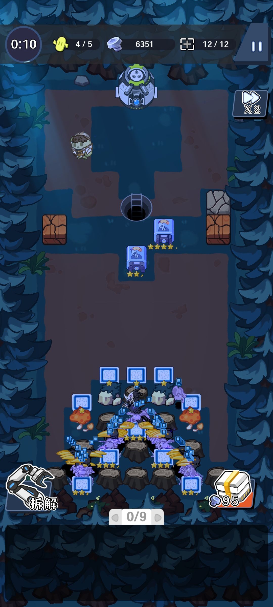 这冰冻不用打都行,大家看看怪物抗性可以这么玩,放在路径上就可以了,开局刷刷冰冻和零件塔就行了,简单开摆2倍速