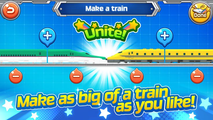 Create your own trains by freely uniting the carriages of bullet trains and regular trains in any way you want!