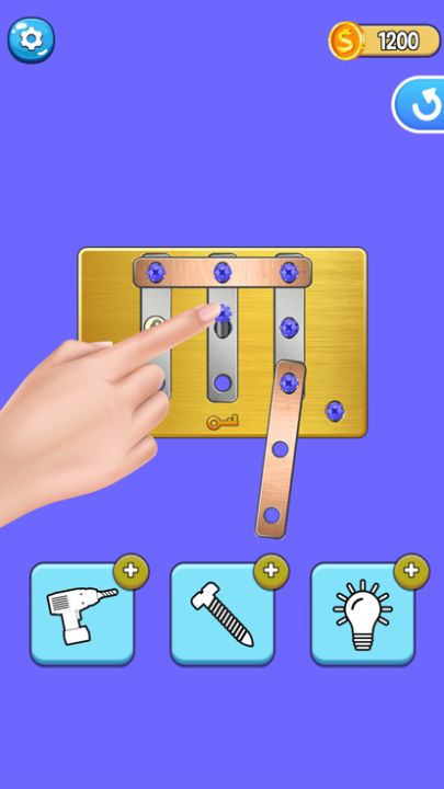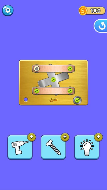 Solve the nuts and bolts screwy levels by unscrewing the objects and placing them into different holes. If you can't figure out where they go you can opt to receive a hint or use either of the boosters to help you solve the puzzles.