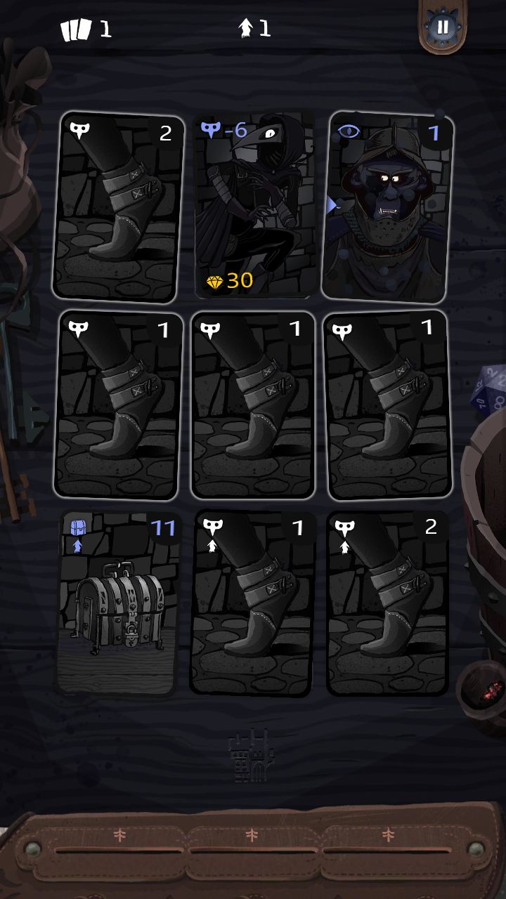 在推荐出来之前,我就从高分区下载了这个游戏。这个游戏吸引我的地方在于那具有神秘色彩的画风以及带有数学和逻辑思维的核心玩法。关于每日游戏,只需要挂个***就能开始了。因为这个帖子不是置顶,可能会沉,所以觉得有用或者能帮助到你的话,不妨评论一下。游戏教程游戏目标:带走宝箱并且找到出口。屏幕左上会有个牌堆牌数,当牌堆耗尽时出口出现。长按一张牌可以看到其名字和英文描述。角色卡:左上显示的是隐蔽