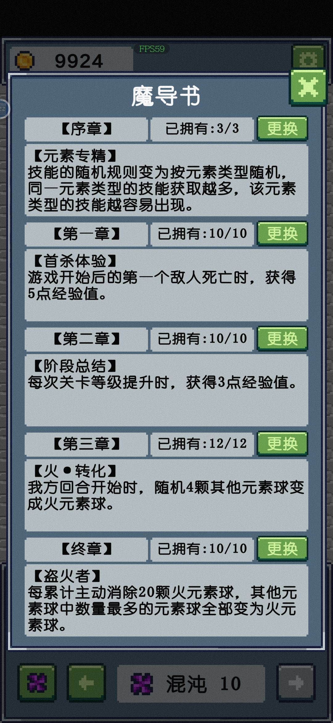 玩了两天,四种单元素build都通关了,分享下单元素通关经验 第一是魔导书,最重要的是第三章最底下四种属性的伤害+1,玩哪种属性选哪个,第二章和终章的天赋同理。定向转换元素是好玩,但不稳定,假如把“伤害+1”改成“伤害翻倍”,是不是就看出来哪个天赋强了? 第二是刷开局,前几个技能必须要有定向转换,保证续航,后面基本闭着眼睛看颜色选技能。 第三是玩法,没有特殊情况的话都是只主动消一种颜色,因为有伤害